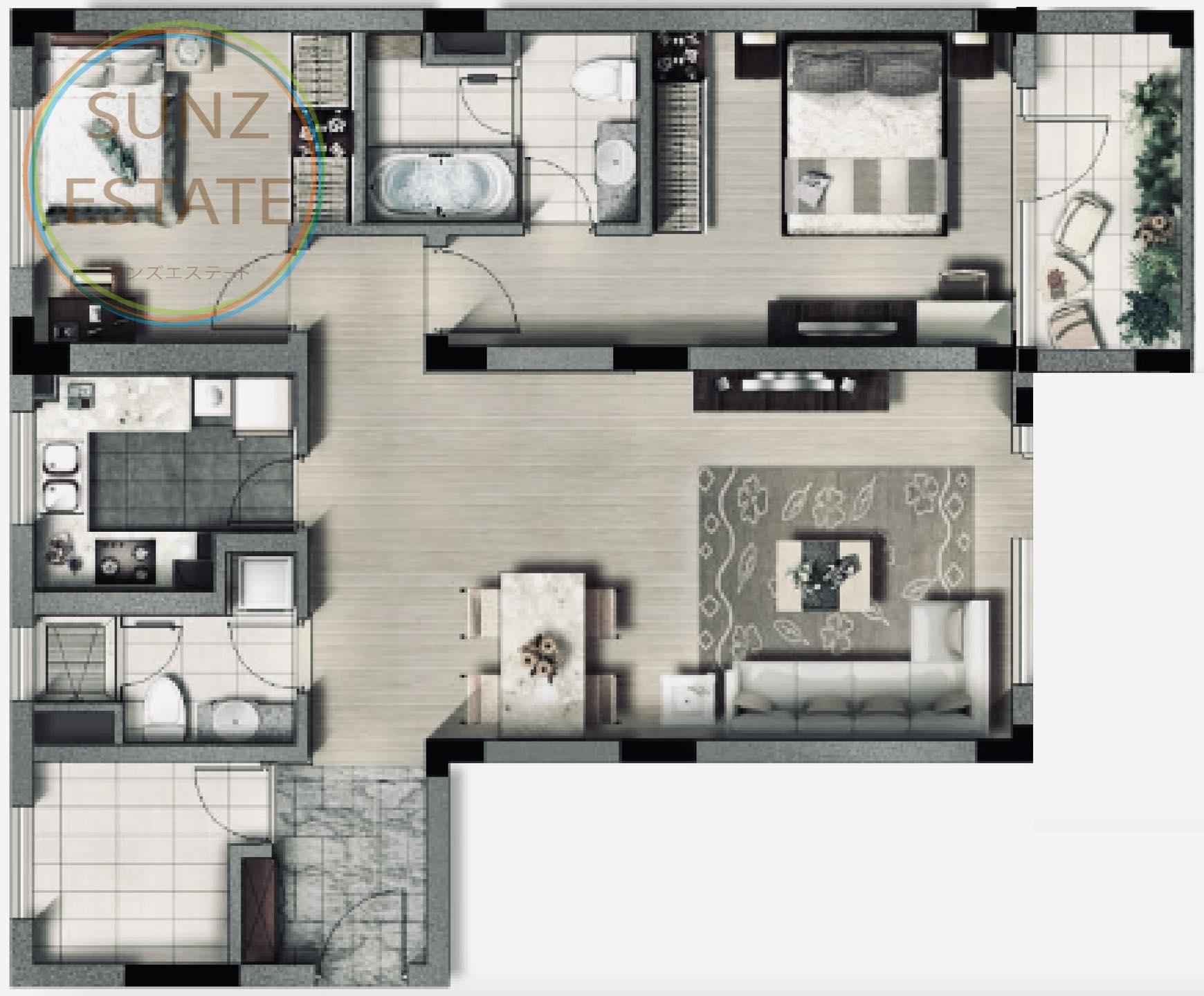 34,000元 | 3LDK | 155㎡ | 紅宝石路駅 | 1分 | バスタブ付 |